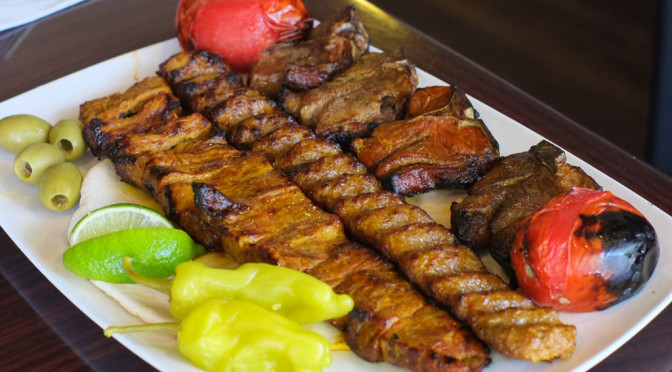 One order of Barg (skewer of marinated Top Sirloin) and one order of Lamb Soltani served on one plate. Lamb Soltani is a combo of lamb chops and koobideh (ground beef kabob). There’s pita bread underneath to soak up the wonderful meat juices :D. The plating is simple and not fussy, but looks fantastic, and is even regal in it’s own way.