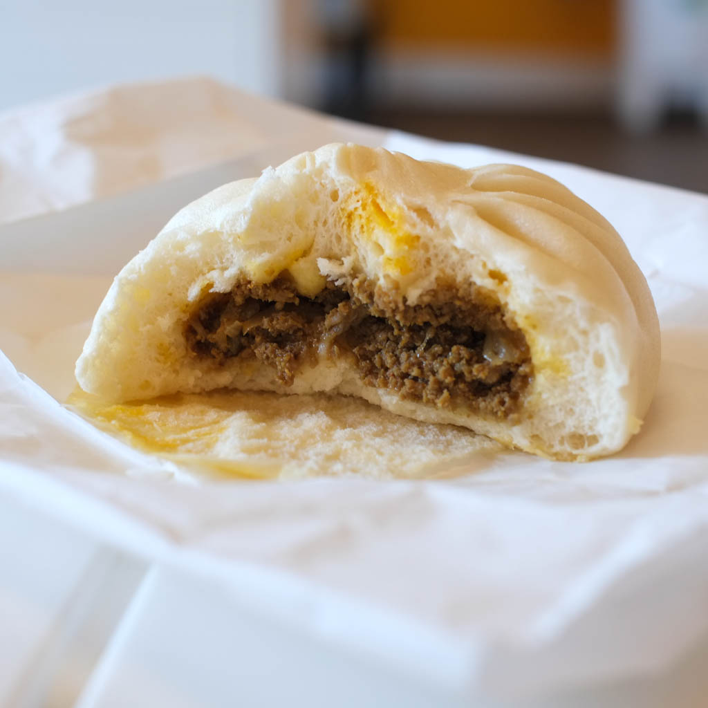 BBQ Delight ($2.50) with pork and “handmade Chinese BBQ sauce”. I really quite enjoyed this one. It’s not the typical, bit-too-sweet standard char siu bao, but is instead a minced pork bun with a savoury/sweet sauce that’s closer to the “Chinese BBQ Sauce” you can buy in jars by Lee Kum Kee, rather than typical sweet red sauce. But in retrospect, the buns are a bit small for the price.