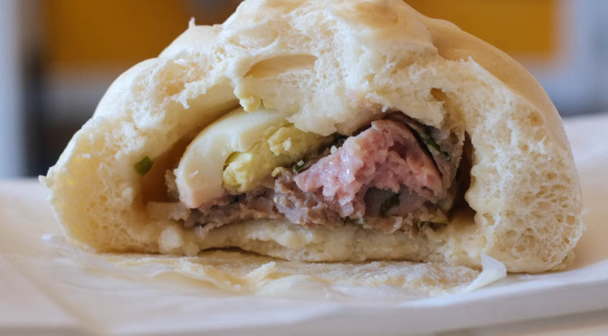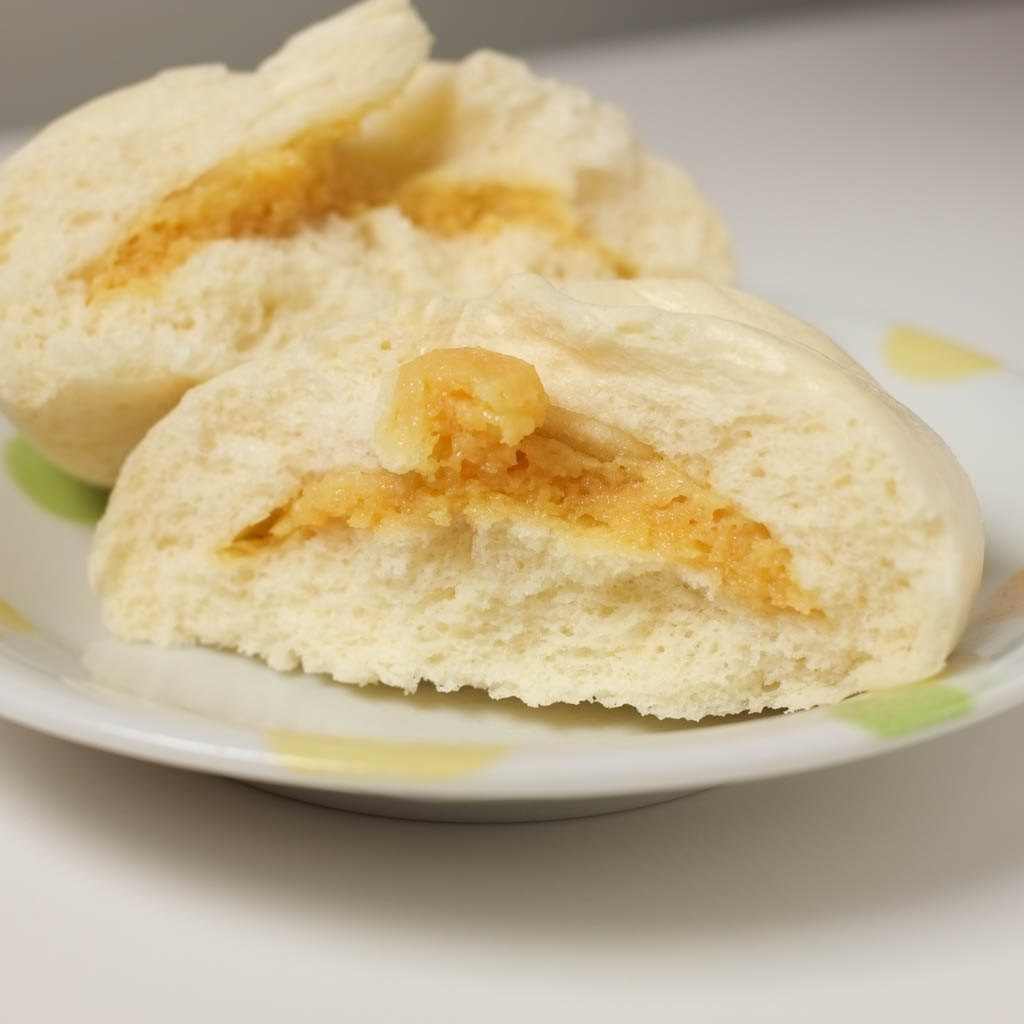 I was impressed with how the egg inside wasn’t overcooked. But I thought the filling could’ve used a bit more seasoning. I bought one for Wicca to try at home, which she nuked the day after. She said it was too salty, so consistency might be an issue right now. If I remember correctly, they put a quarter of an egg in the bun.