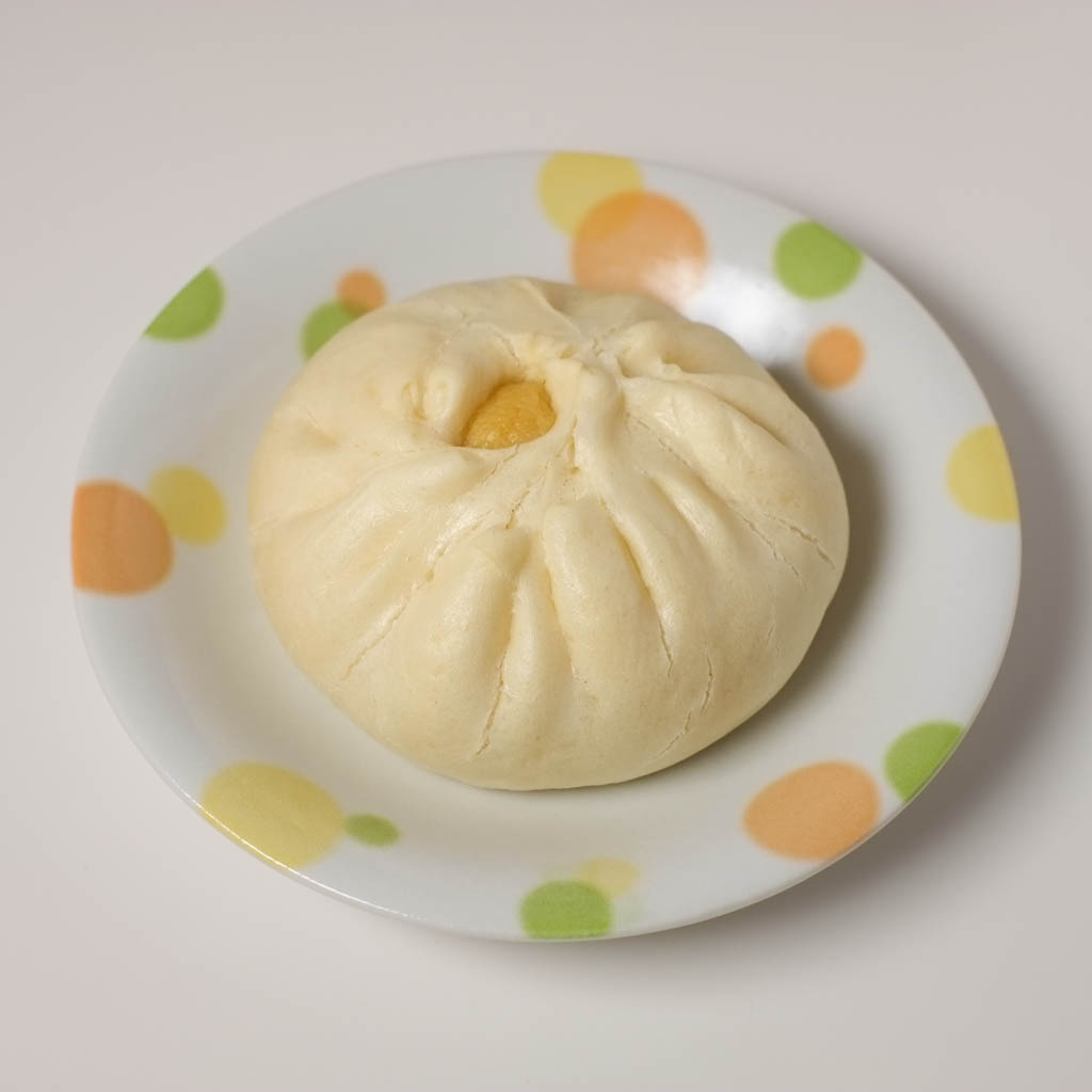 Buttermilk bao ($2.25) that contains butter, milk, and egg. The woman there said this was a Malaysian specialty that you can’t get anywhere else. That sold me on it instantly 😛 This bun was nuked a day later, so the surface of the bun got a bit dried out and cracked 🙁