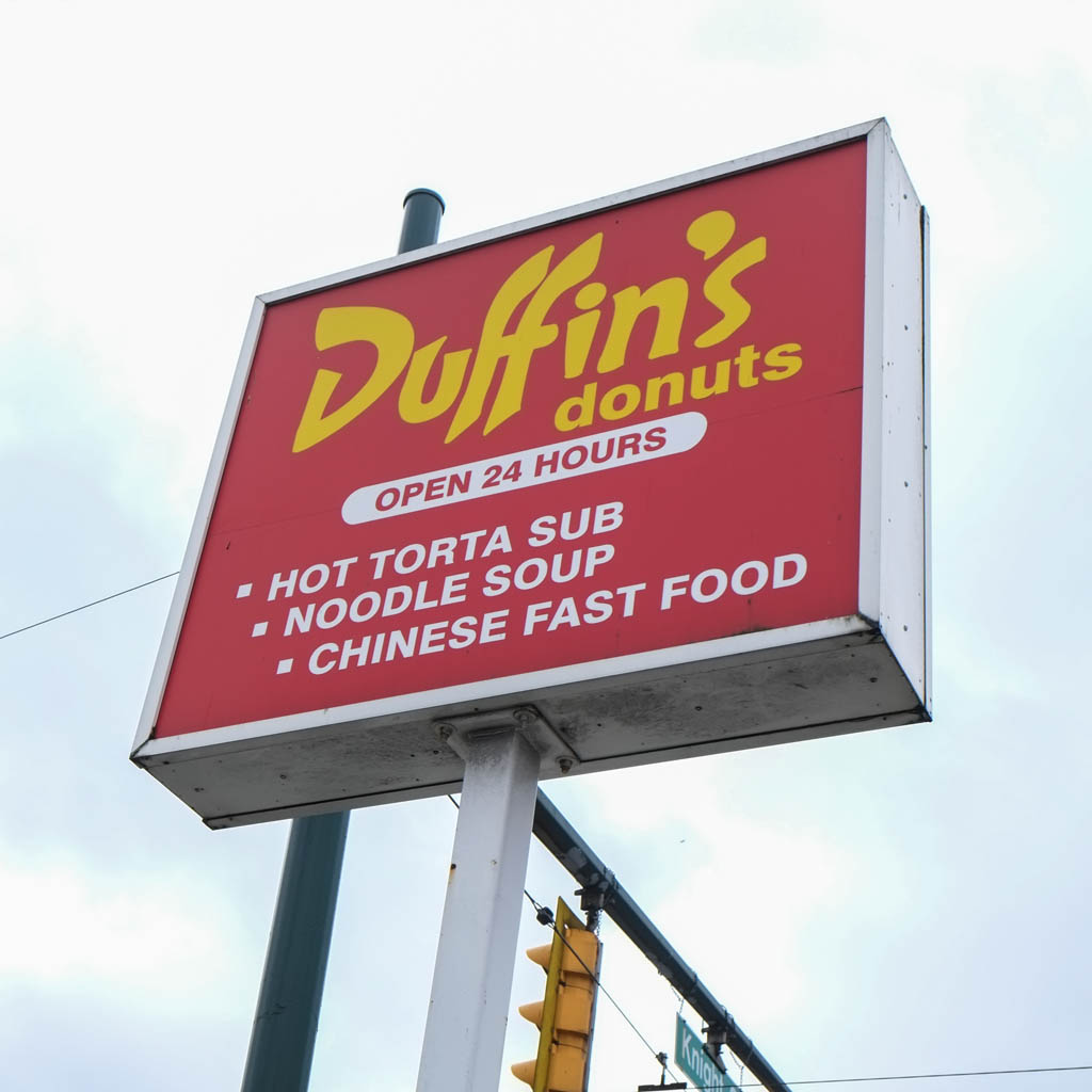 When Duffin’s moved from their original Main & 33rd location (sometime around 2004?), they had the donut shop on the left and a Chinese food shop on the right and they were both connected. They seem to have abandoned the Chinese food part and it’s now just extra seating for the donut shop.