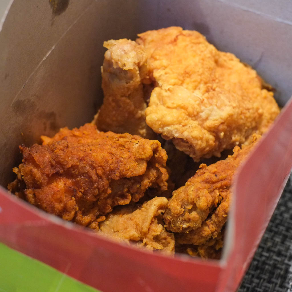 The infamous Fritou Fried Chicken 10-piece box, half regular and half spicy. The spicy isn’t that spicy. Nowhere near as spicy as Church’s spicy chicken (which is pretty damn spicy for a mainstream product).