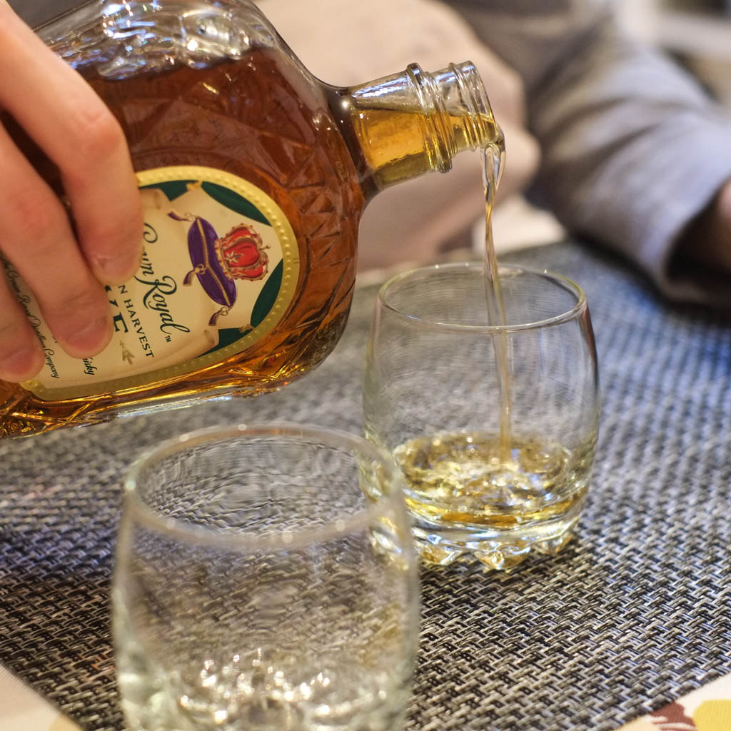 Our boozy lunch wasn’t over yet! Fatone lined up at BC Liquor Store on Cambie near 41st to get a couple bottles of the last of this year’s Crown Royal Northern Harvest Rye Whiskey, named Best Whiskey in the World. We decided to crack one open to see what the hype was about, and also compare it with a couple whiskeys that we know we like, Glenfiddich 15 and Glenlivet 18.