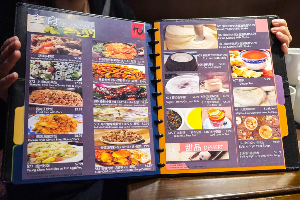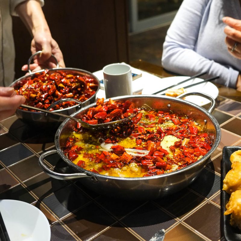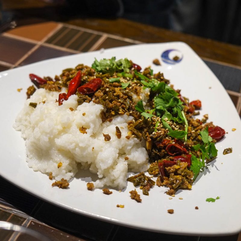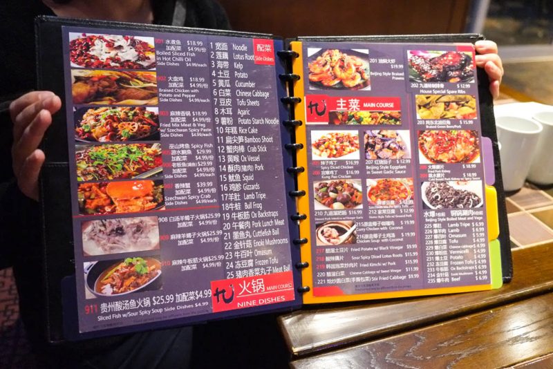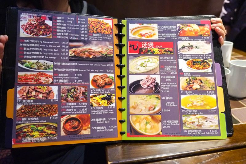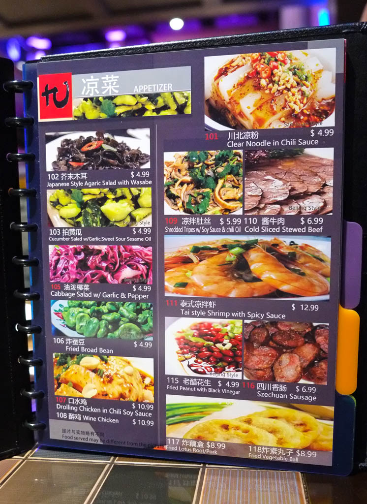 Spicy dishes are designated by the red numbers. So there’s actually plenty to eat here for people who can’t do spicy food. In fact, even though several of our dishes were spicy, even a capsaicin-allergic guy like me could handle it.