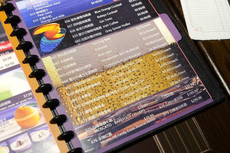 Chimay Blue (9%) is a Belgian strong dark ale. With its rich, malty, dark stone fruit, and Christmas spice flavours, it’s not exactly a great match for spicy northern Chinese food. But being able to get this kind of beer in this kind of restaurant is a mini-triumph. The sweet malt does help cut the heat a bit though.