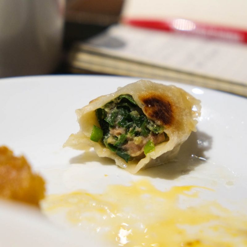 These didn’t come with any dipping sauce, but they tasted flavourful enough on their own. Moist filling, chewy skin. Good.